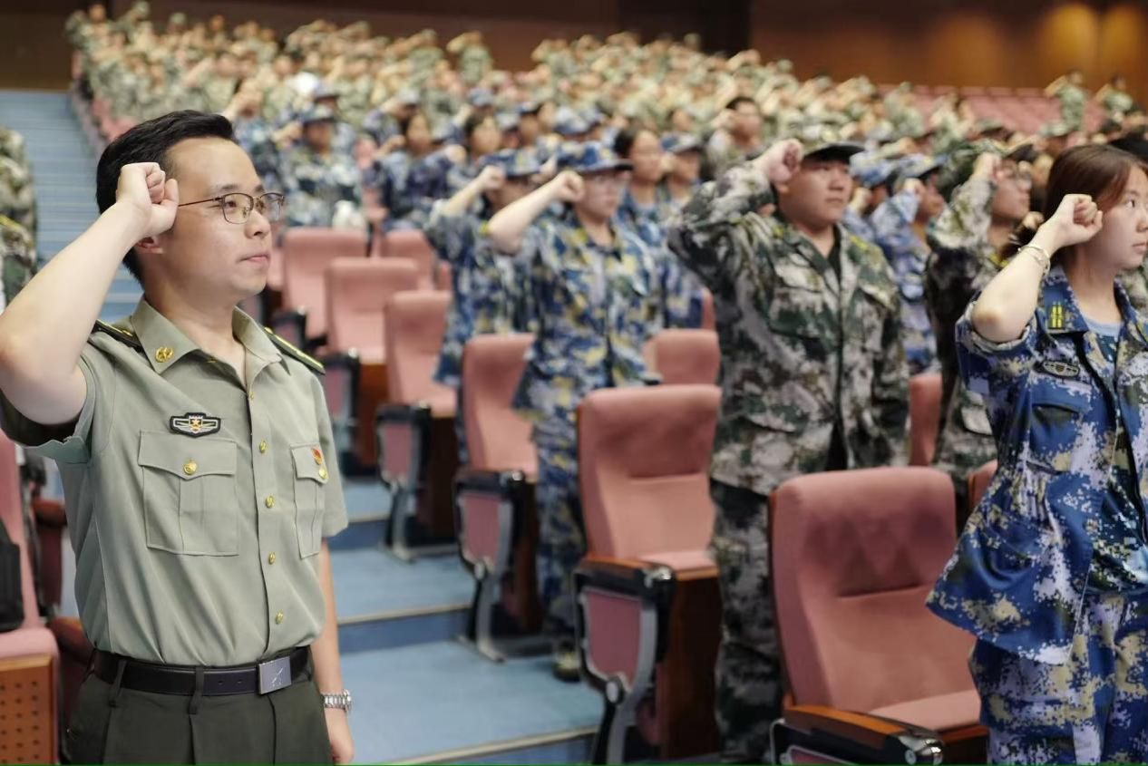 军训期间,辅导员李虎以“歌声中的党史”为主题,为新生带来一堂别开生面的专题团课。他围绕《国际歌》《八角楼的灯光》《十送红军》《游击队之歌》等经典红色旋律,将中共一大、井冈山斗争、长征与抗日战争等重要历史阶段娓娓道来,在旋律与故事中系统回顾了中国共产党的光辉历程。通过鲜活的音乐案例与恳切的语言叙述,抽象的“初心使命”变得可感可触,责任的种子悄然播撒在新生心中。这堂以歌声为纽带、以故事为载体的思政课,摆脱了生硬说教,让崇高信仰在旋律与叙事中自然浸润,直抵心灵。