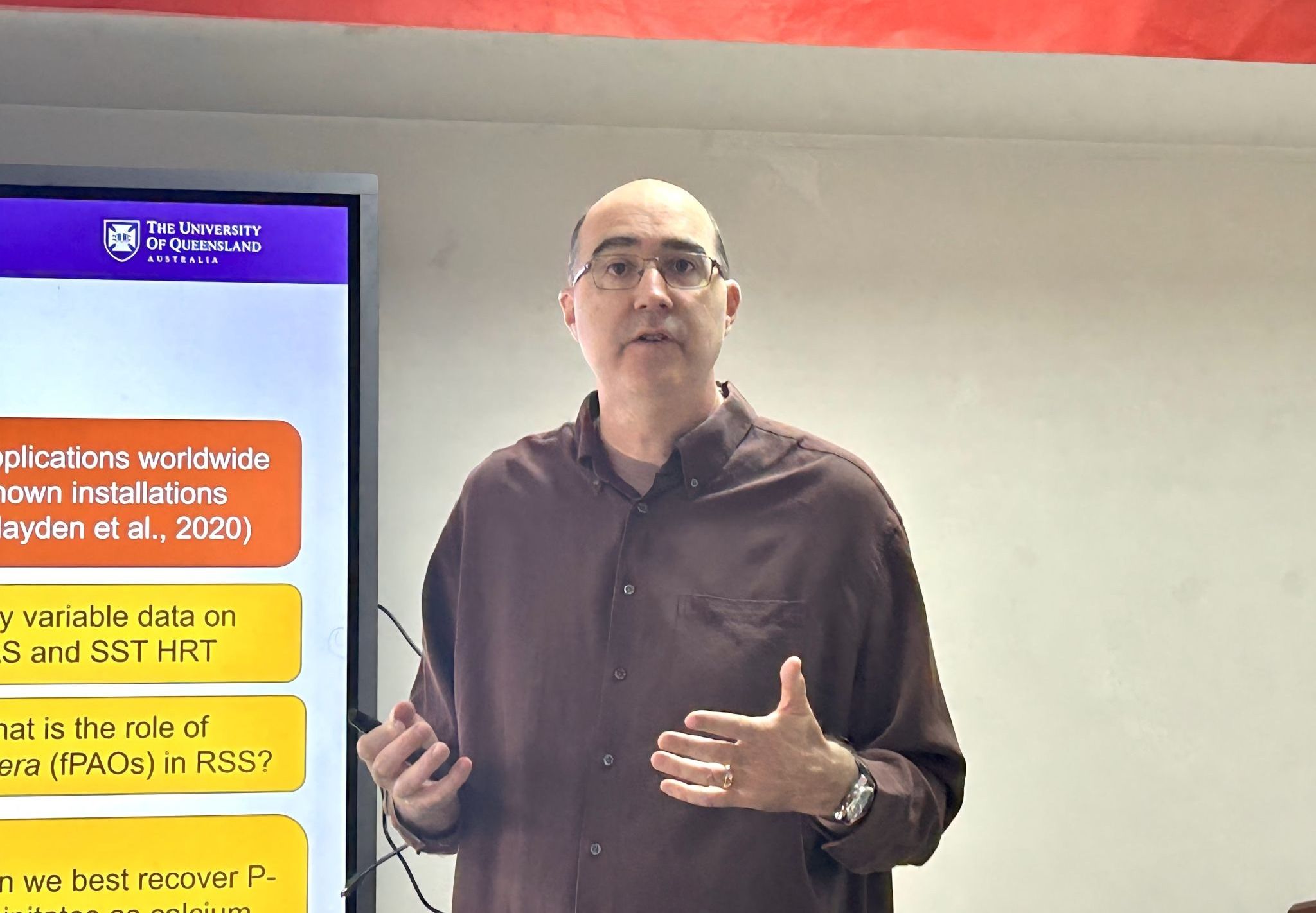 报告中,Adrian Oehmen副教授系统介绍了其团队近年来在污水处理与磷资源回收领域的最新研究成果。他首先指出,磷是生命必需元素,也是农业生产中不可或缺的肥料原料。然而,全球磷矿资源分布极不均衡,多数国家依赖进口,这使得磷资源的供应稳定性面临挑战。与此同时,大量磷随污水排放而流失,既造成资源浪费,又引发水体富营养化等环境问题。因此,从污水中高效去除并回收磷,是实现水回用和资源循环的重要路径。