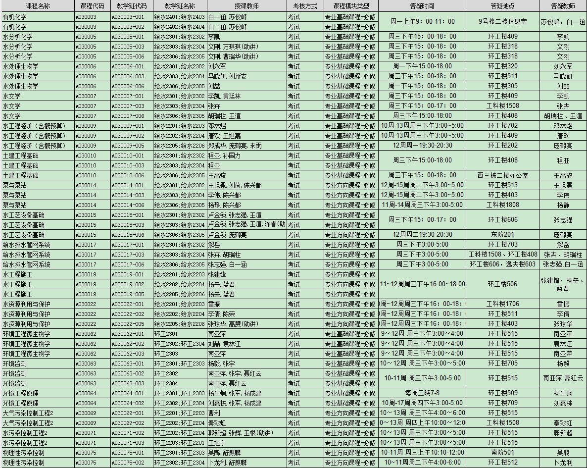 2025-2026-1学期本科生必修课答疑安排