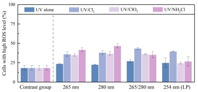 图4.在300 mJ/cm2紫外剂量条件下黑曲霉生物膜细胞内高活性氧水平变化